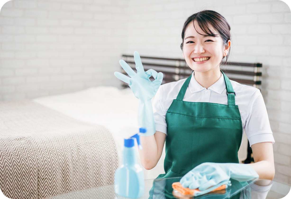 Aハウスクリーニングでは、キッチン・バスルーム・トイレ・リビング・寝室などの一般的な清掃から、床のワックスがけ、窓拭き、壁の汚れ落としまで幅広く対応しています。特別な清掃が必要な場合もご相談いただければ対応可能です。