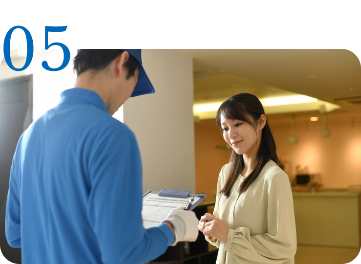 作業終了後、きれいになったお部屋のご確認と作業内容をお伝えさせていただきます。気になることはなんでもご質問ください。
